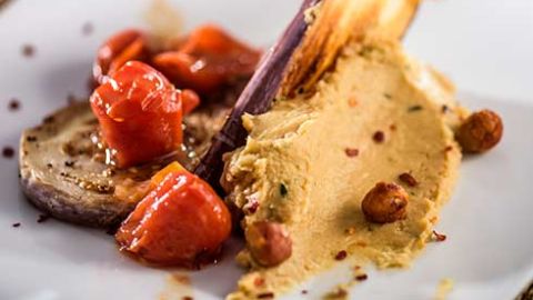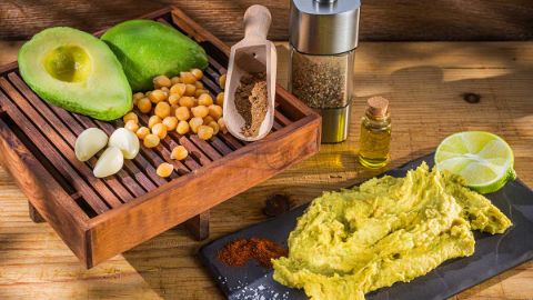Kichererbsen, Avocado und Gewürze. Das macht viel her! In der Kombination mit gegrilltem Gemüse wird daraus sogar eine leckere, deftige Hauptspeise.