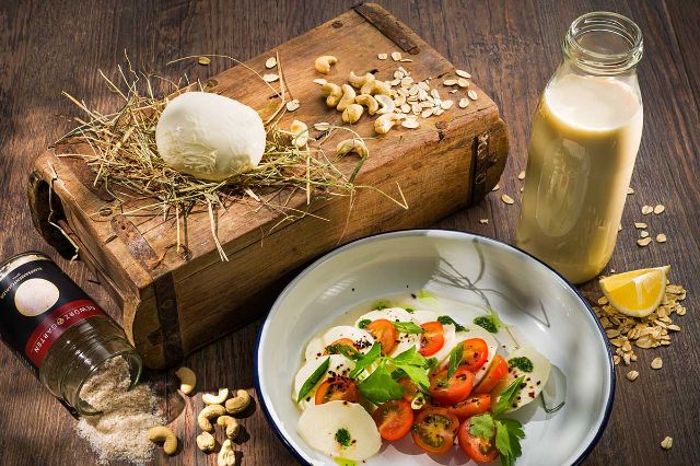 Auf der Basis von Mandelmilch und Cashewkernen kann man ganz leicht so einen schönen veganen Mozzarella zaubern. Man braucht einfach nur die Idee und das Rezept verraten wir gerne!